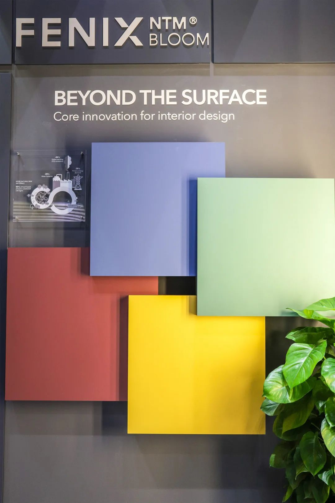 此次展會(huì)展示的是FENIX®NTM產(chǎn)品系列,尤其是BLOOM全系列,這個(gè)系列的特點(diǎn)是環(huán)保,參觀者次非常集中而直觀的感受到FENIX®超啞光,柔霧面,抗指紋和熱修復(fù)的四大特性,很多現(xiàn)場(chǎng)參觀的朋友都要直接上手摸一摸,柔順的觸感直觀的給參觀者展示了FENIX®的產(chǎn)品特性。